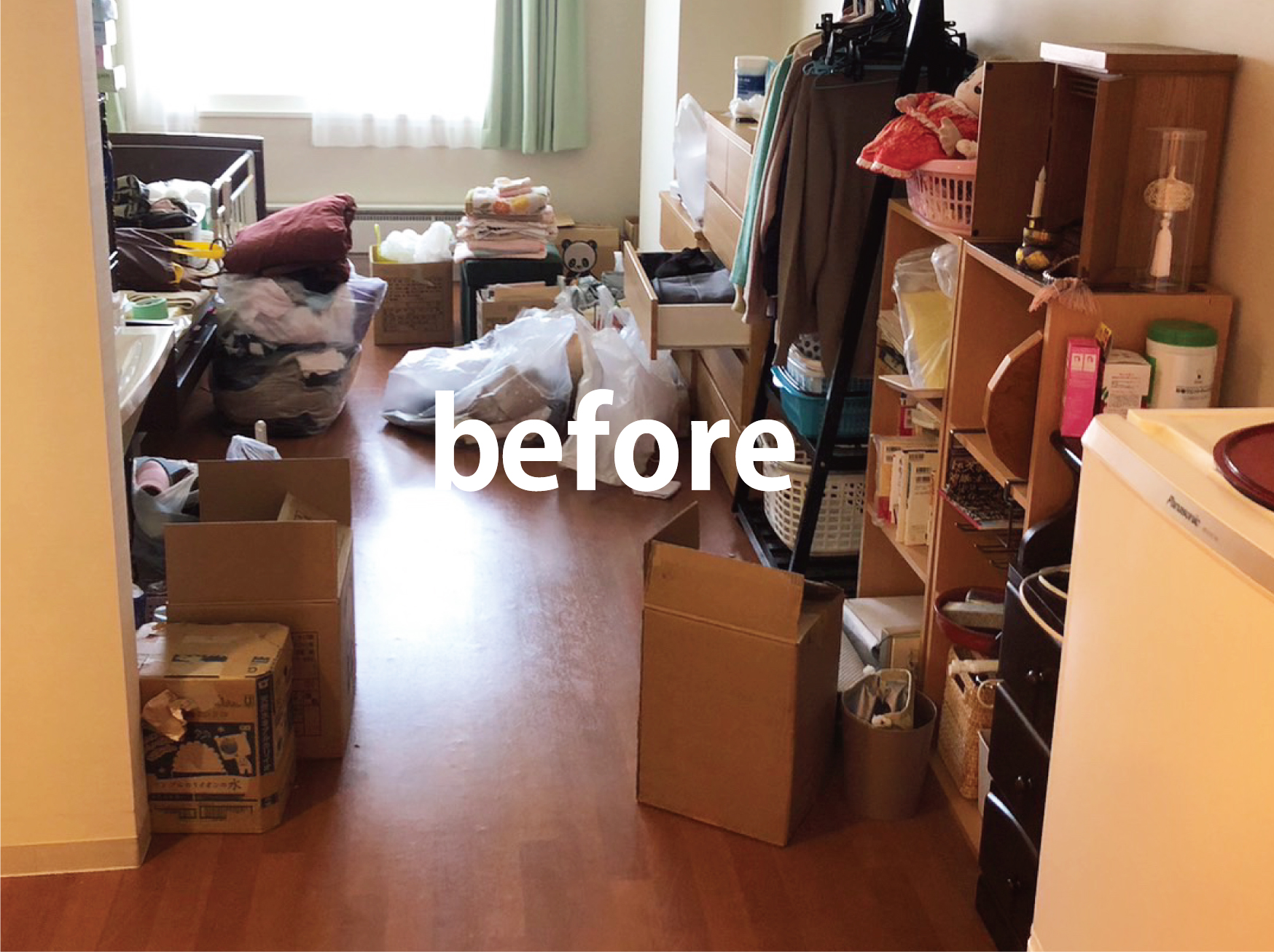 施設暮らしだったので物はそれほど無かったのですが、衣類などは思ったより多く処分をお願いしました。