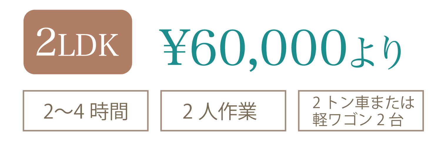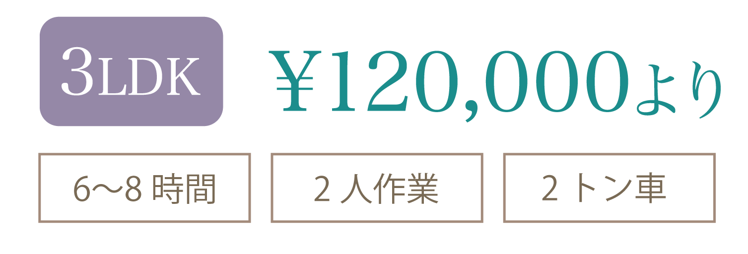 部屋の大きさでの目安料金となります。